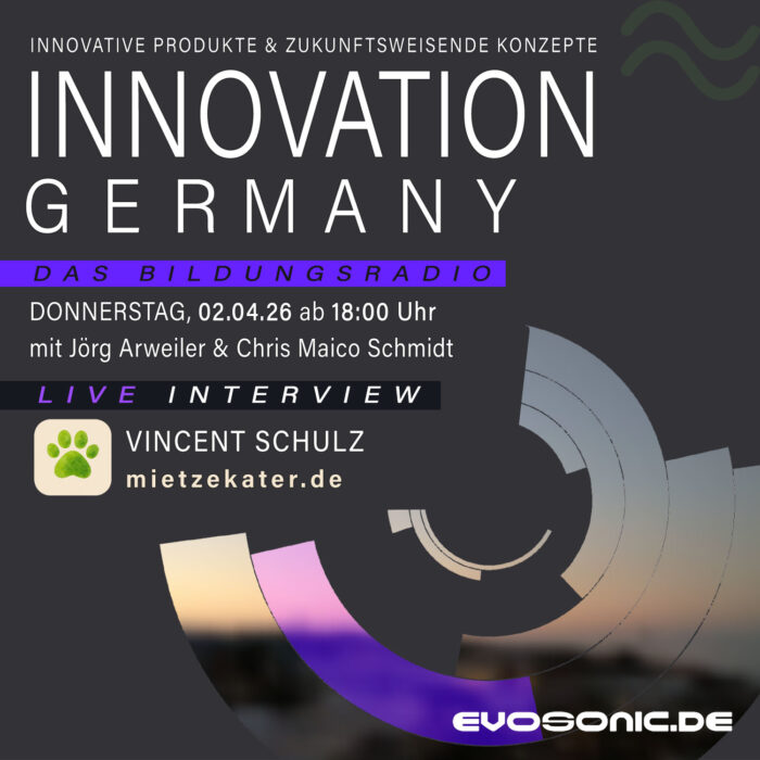 INNOVATION GERMANY LIVE auf EVOSONIC RADIO, Donnerstag, 02. April, ab 18 Uhr Gast: Vincent Schulz von Mietzekater.de