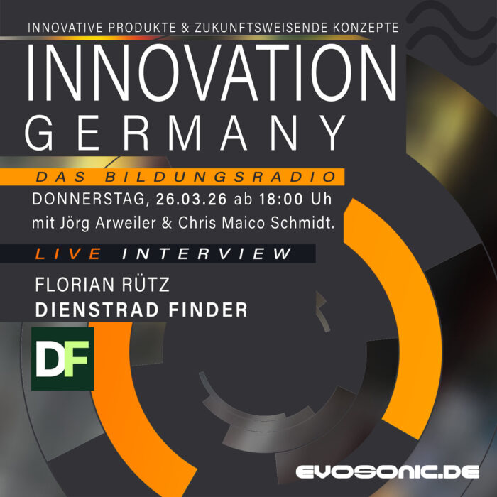 INNOVATION GERMANY LIVE auf EVOSONIC RADIO Donnerstag, 26. März, ab 18 Uhr Gast: Florian Rütz von Dienstrad Finder