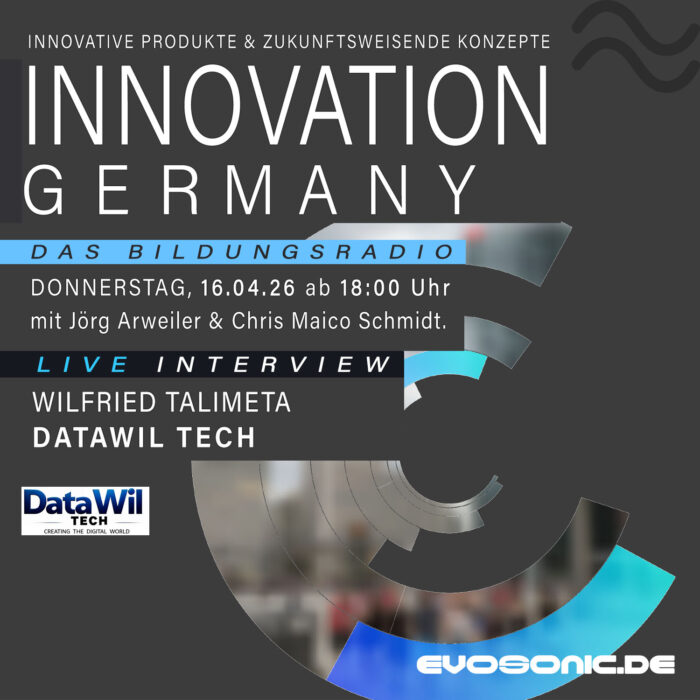 INNOVATION GERMANY LIVE auf EVOSONIC RADIO Donnerstag, 16. April, ab 18 Uhr Gast: Wilfried Talimeta von DataWil Tech