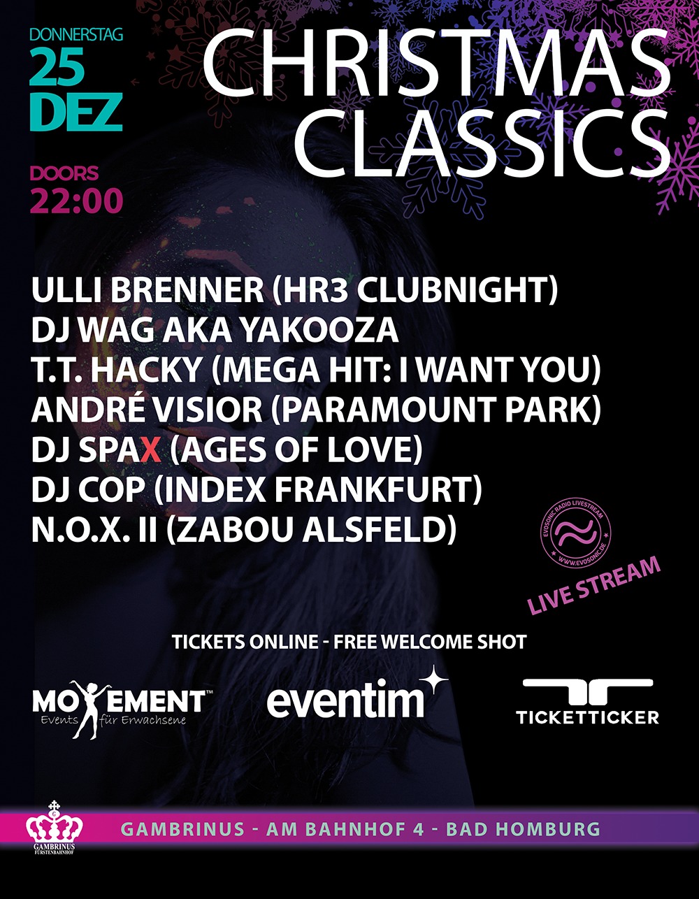 Liveübertragung aus dem Domizil in Giessen am 27.12.2025, ab 23 Uhr.
