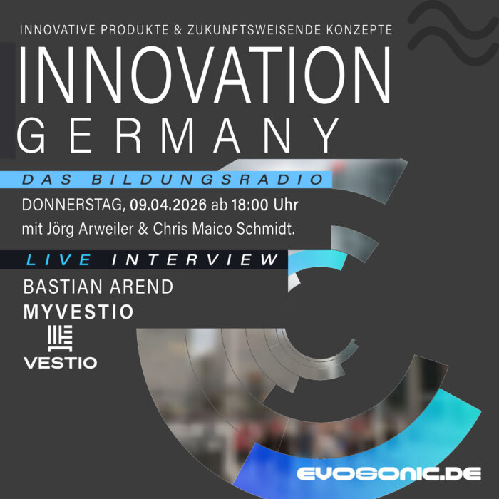 INNOVATION GERMANY LIVE auf EVOSONIC RADIO Donnerstag, 09. April, ab 18 Uhr Gast: Bastian Arend von MyVestio.com