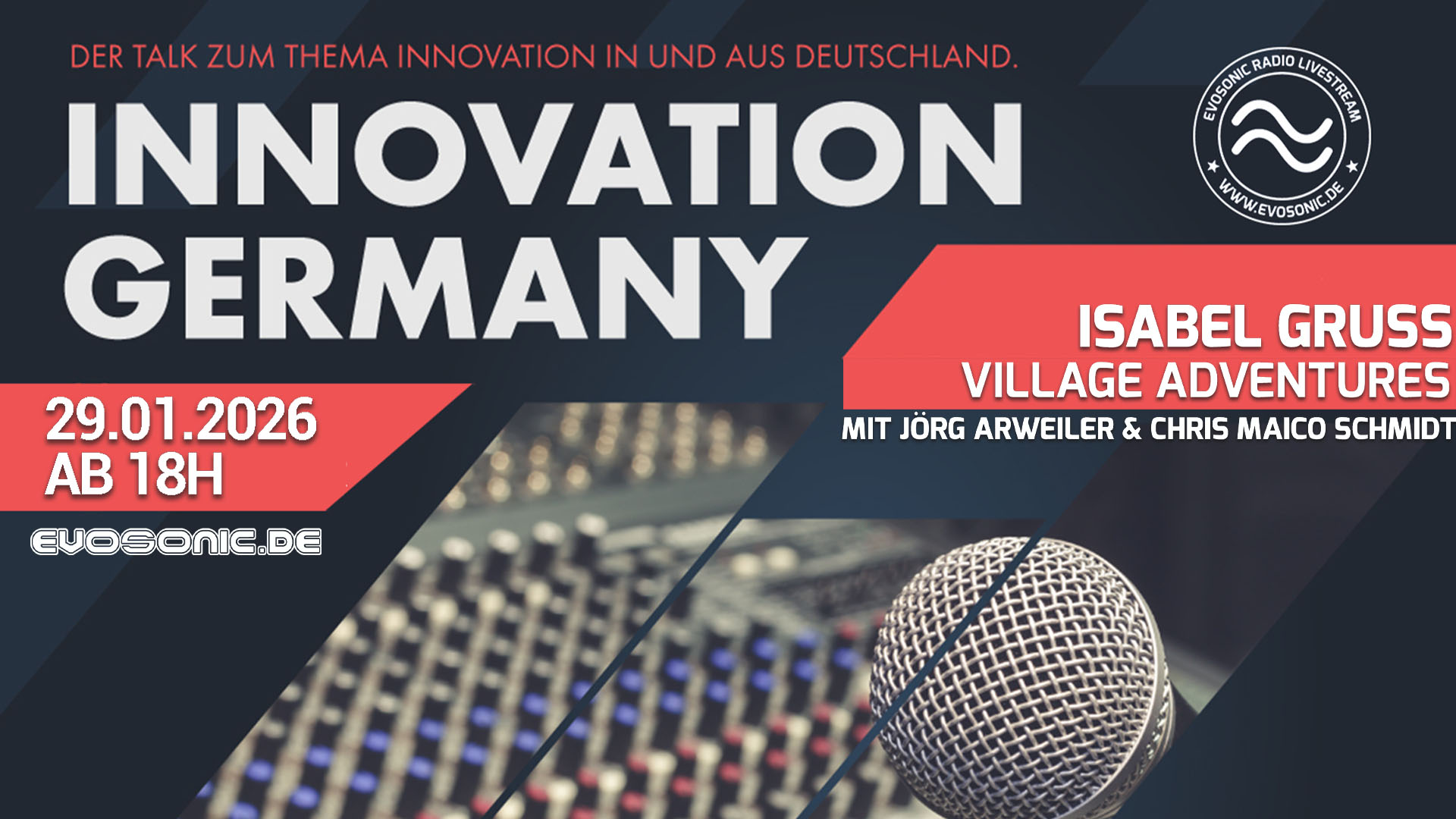 merkt euch diesen Termin vor: Am Donnerstag, den 26. Februar 2026, um 18 Uhr erwartet euch eine spannende Ausgabe von „INNOVATION GERMANY“ live auf EVOSONIC RADIO!