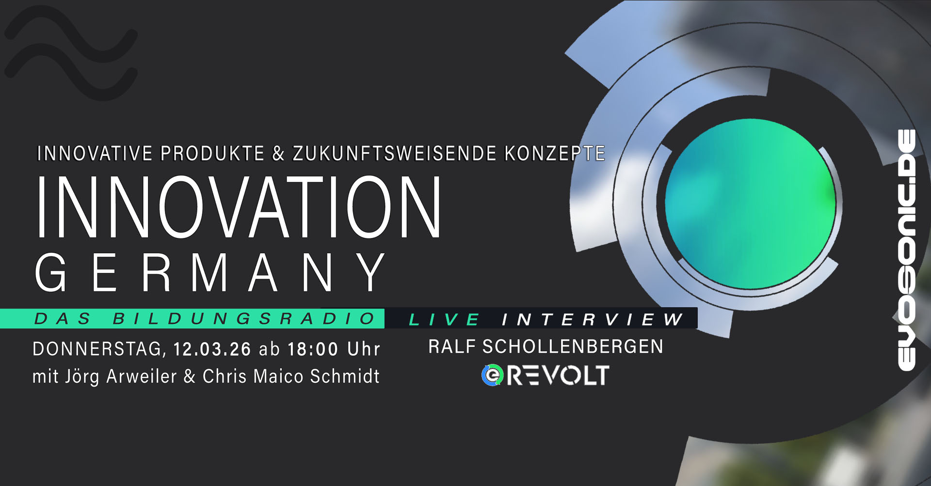 wir freuen uns, Sie zu einer wegweisenden Ausgabe von „INNOVATION GERMANY“ einzuladen, die am Donnerstag, den 12. März 2026, um 18 Uhr live auf EVOSONIC RADIO ausgestrahlt wird!